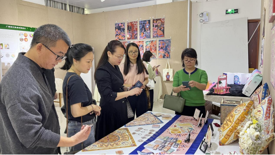 来访单位一行人饶有兴致的看完员工毕业设计作品,对公司员工毕业设计作品给予充分肯定,其中,蒋晗明表示,要将地方服务项目和主题创作融入毕业设计,服务地方文化创意产业发展和传统手工艺术产业振兴,鼓励师生们继续深挖地方文化资源,服务城乡建设,加快成果转换步伐。谭绿叶表示,我们的毕业设计作品要走出去,多学习和借鉴其他艺术院校的设计理念,多体验本地乡土文化,提炼乡土特色,使设计作品真正接地气、有活力。